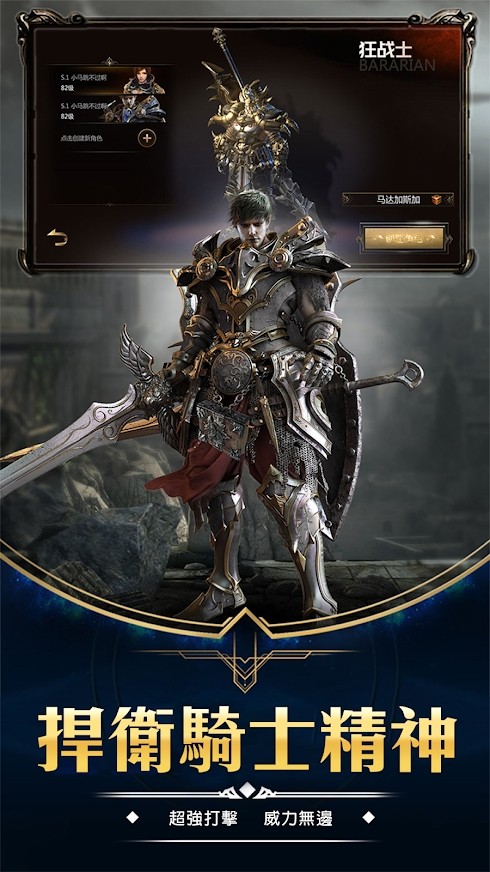 圣骑士:具有超高技巧及强健的体魄,擅长使用剑与盾并运用神圣之力将对手消灭,剑锋如雷,坚若磐石。