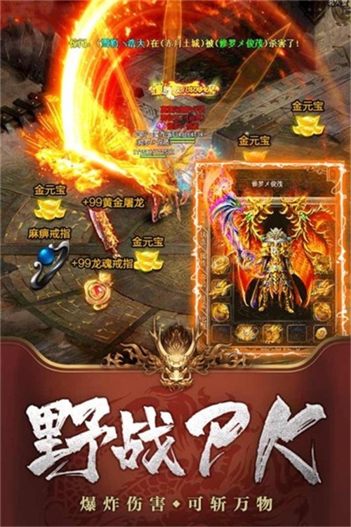 4、热血攻城,万人同屏,与你血战到底,超高爆率,玩法丰富,神兽坐骑等你来骑!