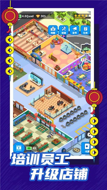 4、充分利用周围一切可以利用的资源,各种商城设施都能建造提升等级赚取收益。