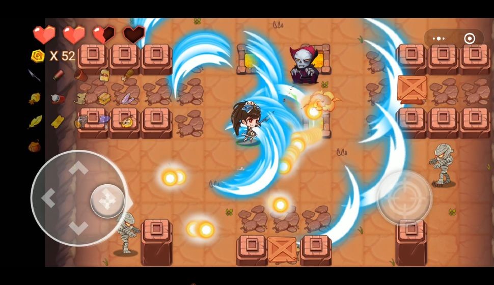 3、最初版本包含4个角色,5个BOSS,50+道具,不同的道具组合会产生非常强力的武器,