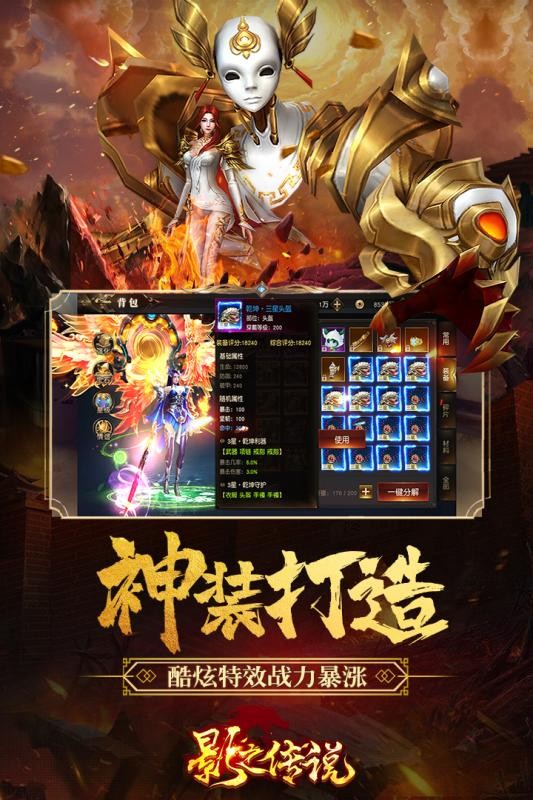 影之传说是一款爽快刺激的角色扮演手游,玩家能在游戏中以强者的身份进入一个充满传说的异世界开启一段刺激热血的征程,超多的玩法除了PVE之外更有刺激PVP战斗给你带来的最热血刺激的游戏体验,大量的装备任你选择,独特套装全方位加强你的战斗力,让你体验最热血刺激的爽快战斗。