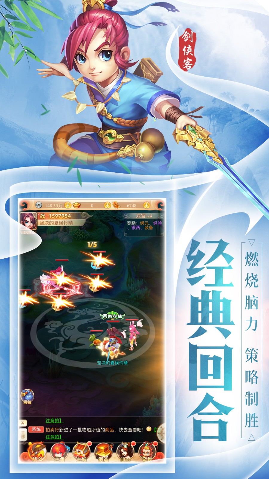 变态西游是一款以西游为背景的回合制对战手游,激情四射的战斗,属性逆天的伙伴,伤害爆炸的神兵,指尖操作的快感,带你体验神魔两重天的奇妙境界,最重要的是上线就送vip5,充值比例1:3,一次付费永久享受特权,让你用最少的投资区其体验最热血刺激的战斗,快来下载吧!