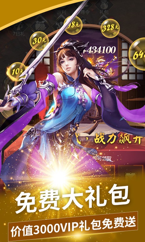 福利5,免费领取总价值3000RMB的VIP1-VIP15大礼包