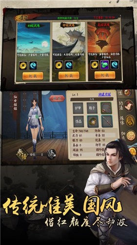 3、精美奢华的古风服饰任你自由穿戴,不仅会让你的形象更养眼,还能增强战斗力。