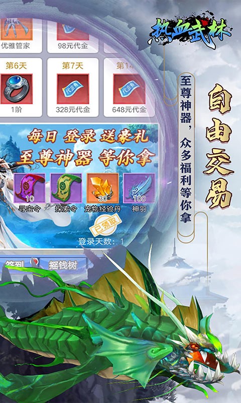 热血武林福利版是一款玩法众多的复古玄幻修仙冒险手游,开放世界自由探索给你全新游戏体验,跨服国战热血PK享受充满史诗的冒险,游戏中有着超多的礼包等你来领取,众多的神器能够不断升级,升级之后的神器才能够解锁各种隐藏效果。